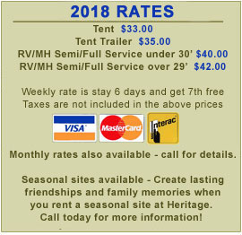 Heritage Country Camping 2400 Rte 105 Lower Queensbury, NB E6L1G3 Phone: 506.363.3338 Email: info@heritagecamping.com